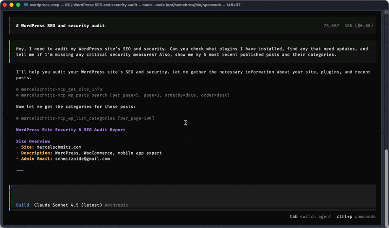 This is the game-changer for WordPress development. The Model Context Protocol (MCP) server gives AI direct access to your WordPress site’s data: posts, pages, users, plugins, settings, everything.